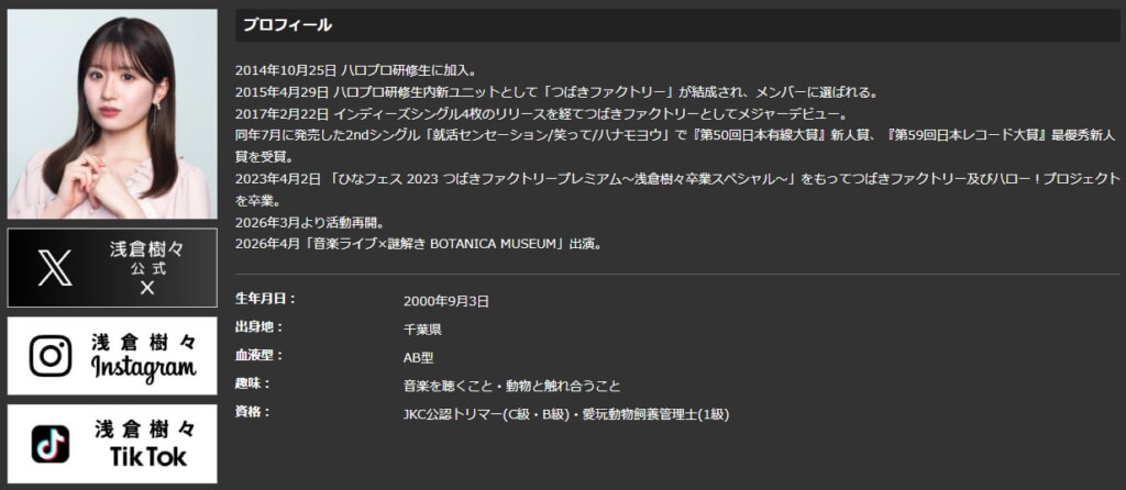 復帰の知らせの後には、地元である 千葉県 で開催されるイベントへの出演情報も公開されるなど、少しずつ活動の輪郭が見え始めている。そして2026年3月に入り、新たに X(旧ツイッター)の公式アカウントが開設されたほか、公式サイトのプロフィール欄も大きく刷新された。